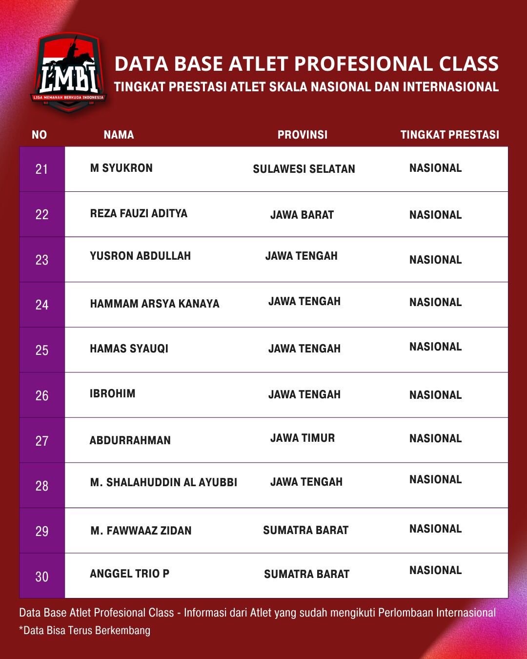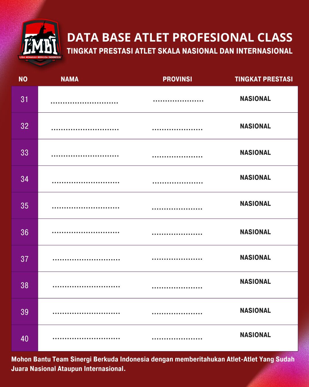 • Nilai Atlet Nasional